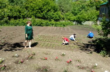 Под руководством педагога школьники работают на грядках и в цветниках.