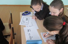 На протяжении всего занятия учащиеся 7 класса выполняли задания по рабочей тетради «Занимательный русский язык» («Подбери пословицу к картинке», «К иностранной пословице подбери аналогичную русскую», «Соедини начало и конец пословицы», «Пословица, зашифрованная в криптограмме»).