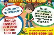Детский телефон доверия — бесплатная анонимная служба экстренной психологической помощи детям и родителям по телефону. Она играет важную роль в решении задач по выявлению и профилактике детского неблагополучия, нарушений прав детей, жестокого обращения с ними.
