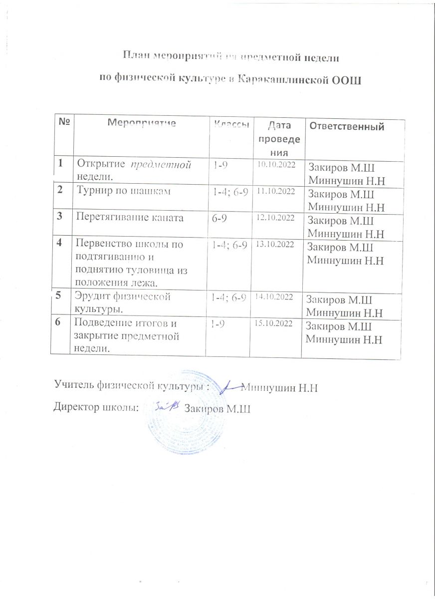 План мероприятий по физической культуре/ Физик культура буенча чаралар планы