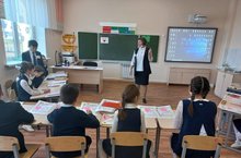 Яшь армиячеләр Батырлык дәресенә мәгълүмат әзеләделәр һәм сыйныфташлары янында чыгыш ясадылар.