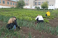 Бүген хезмәт һәм ял лагерында тәрбияләнүчеләр мәктәп яны участогында эшләделәр: яшелчә түтәлләрен утадылар, су сиптеләр.