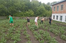 Воспитанники лагеря труда и отдыха сегодня окучивали картошку.