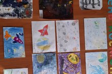 В рамках недели музыки и ИЗО для начальных классов была организована выставка рисунков о космосе.