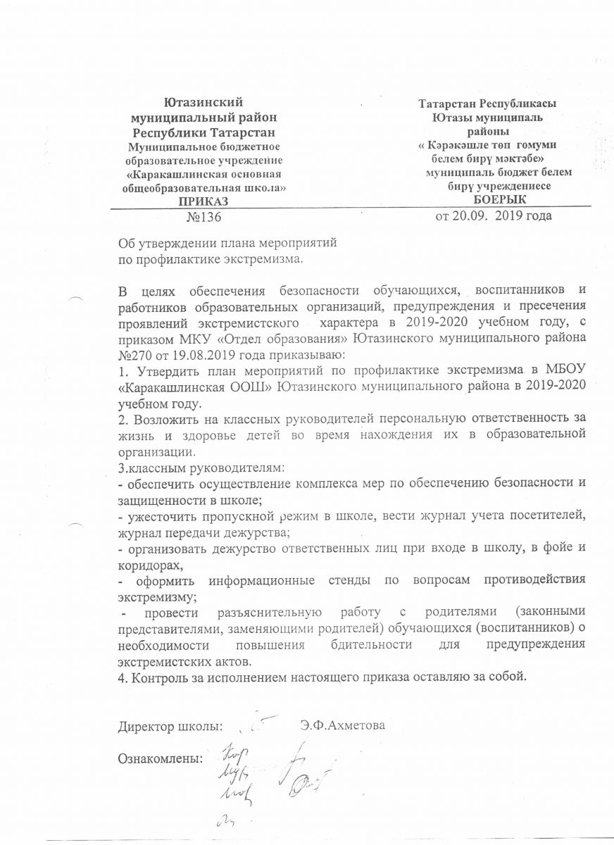 Приказ и план мероприятий по профилактике терроризма и экстремизма РОО на 2020-2021 учебный год