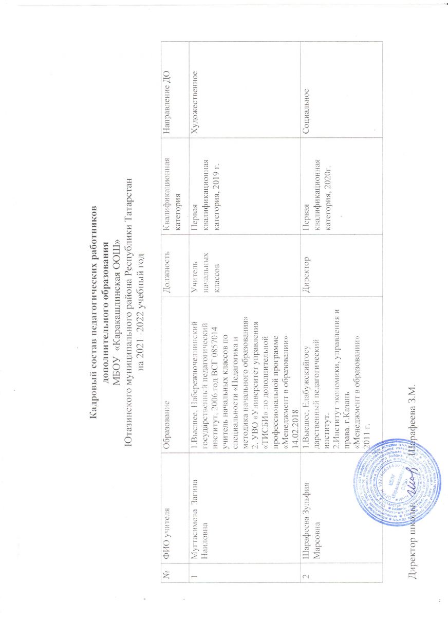 Кадровый состав педагогов дополнительного образования на 2021-2022 учебный год