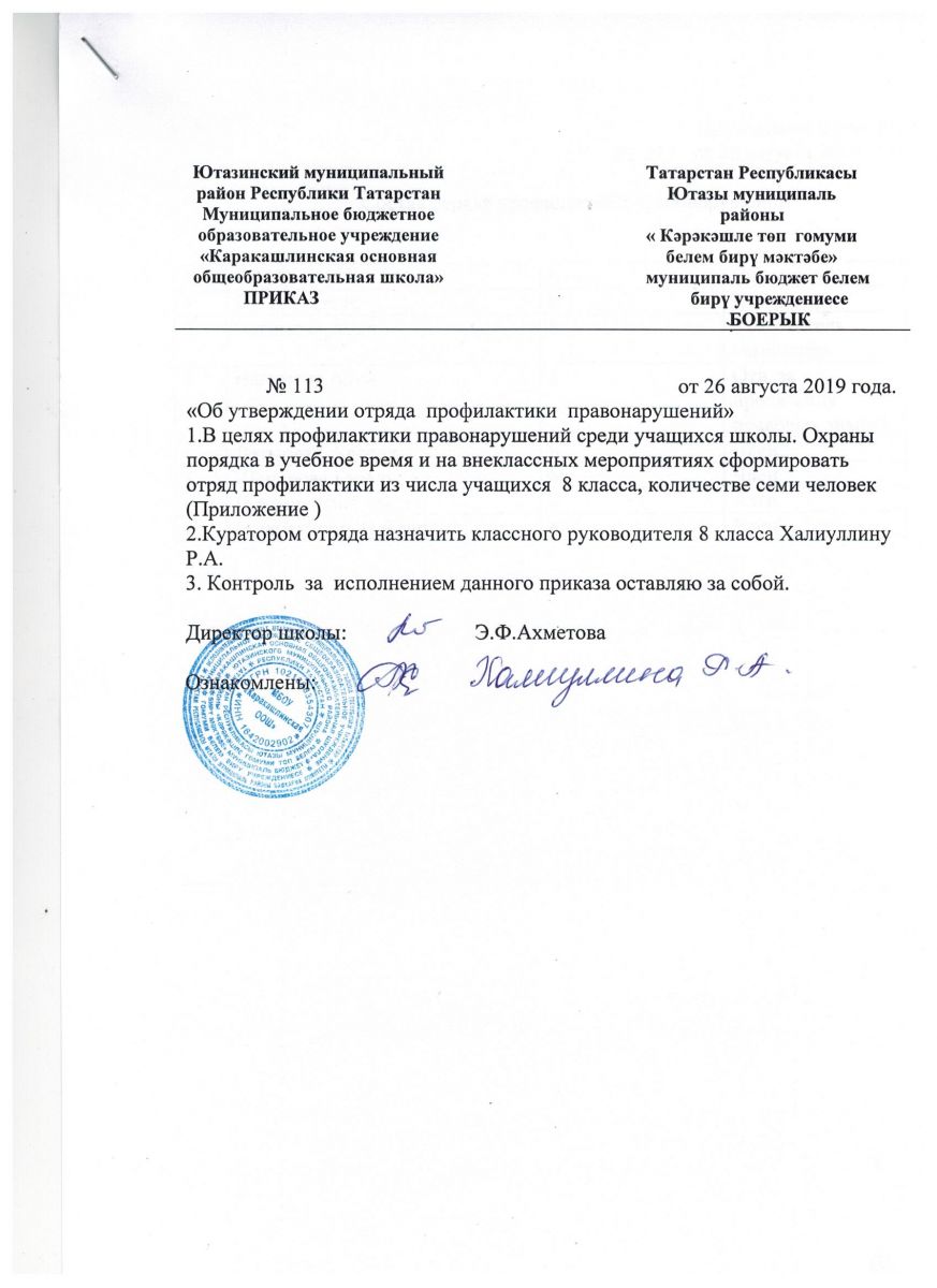 Приказ на 2019-2020 уч.год отряда отряда профилактики правонарушений