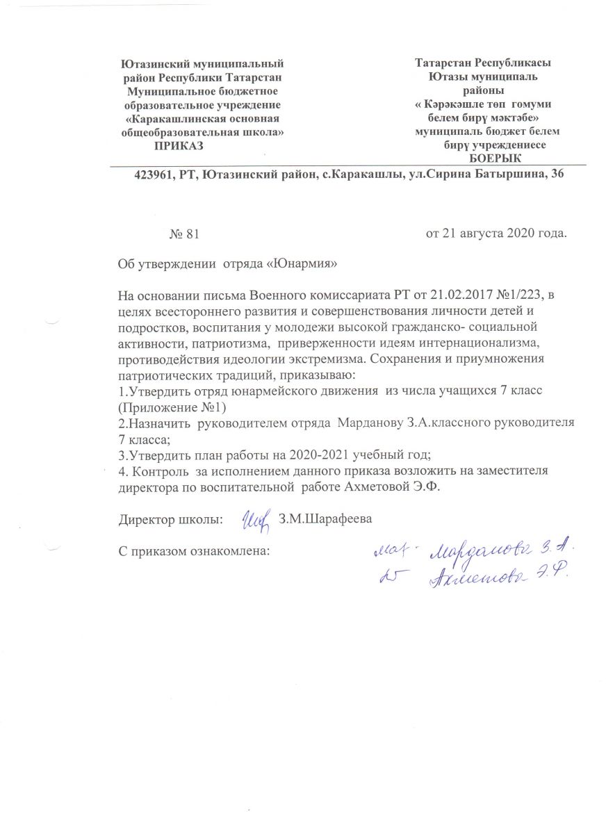 Приказ Юнармия на 2020-2021 учебный год