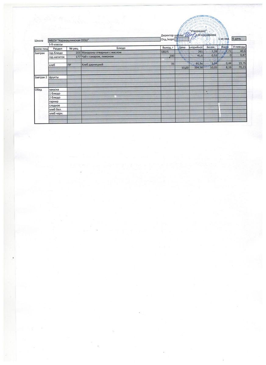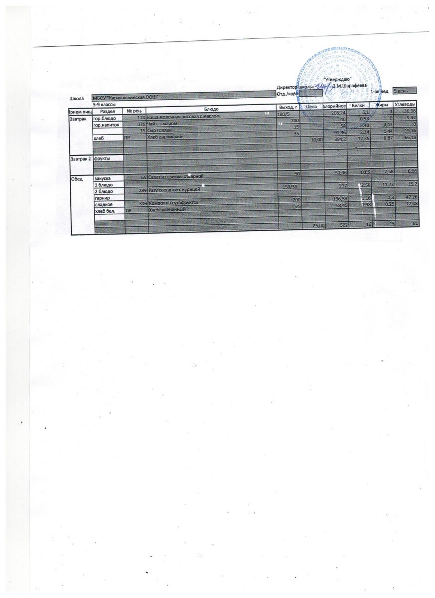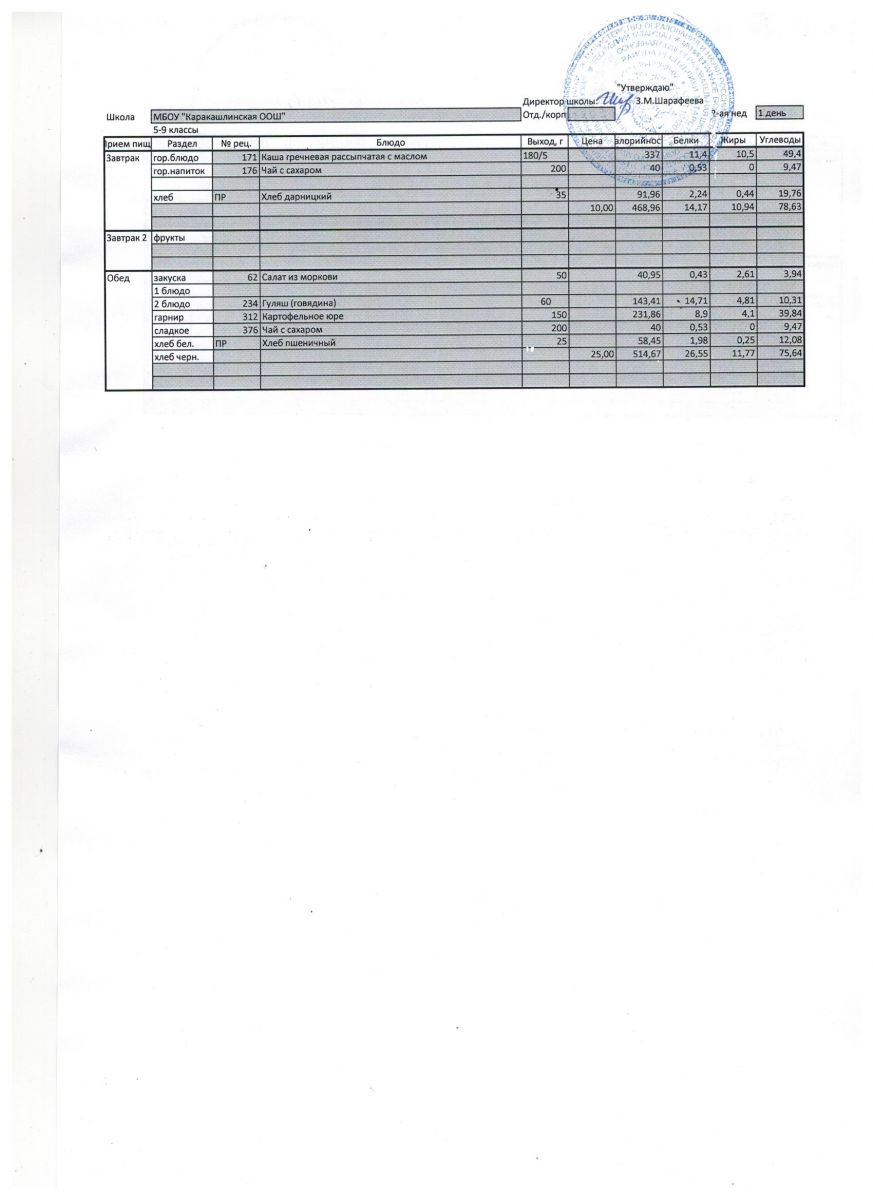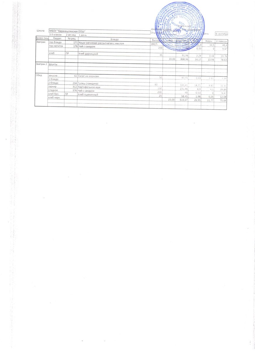Меню на 07 сентября 5-9 классы