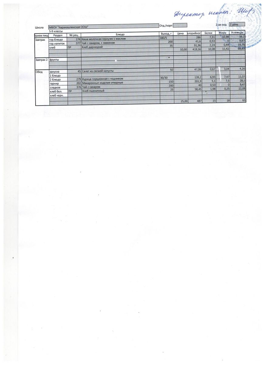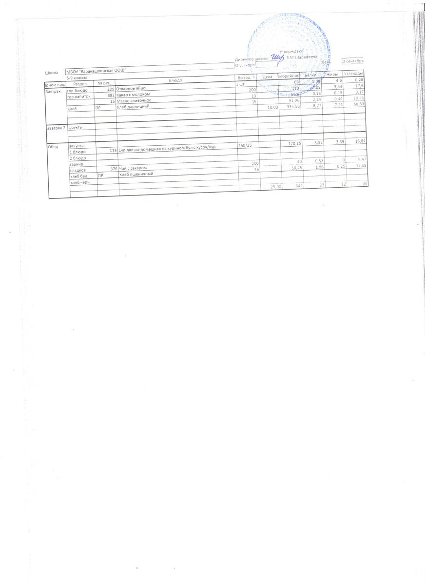 Меню на 02 сентября 5-9 классы