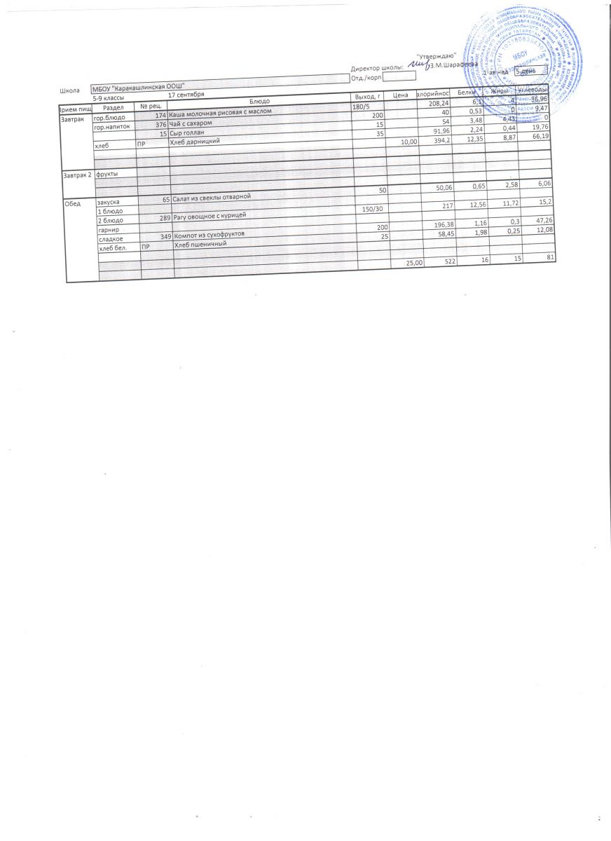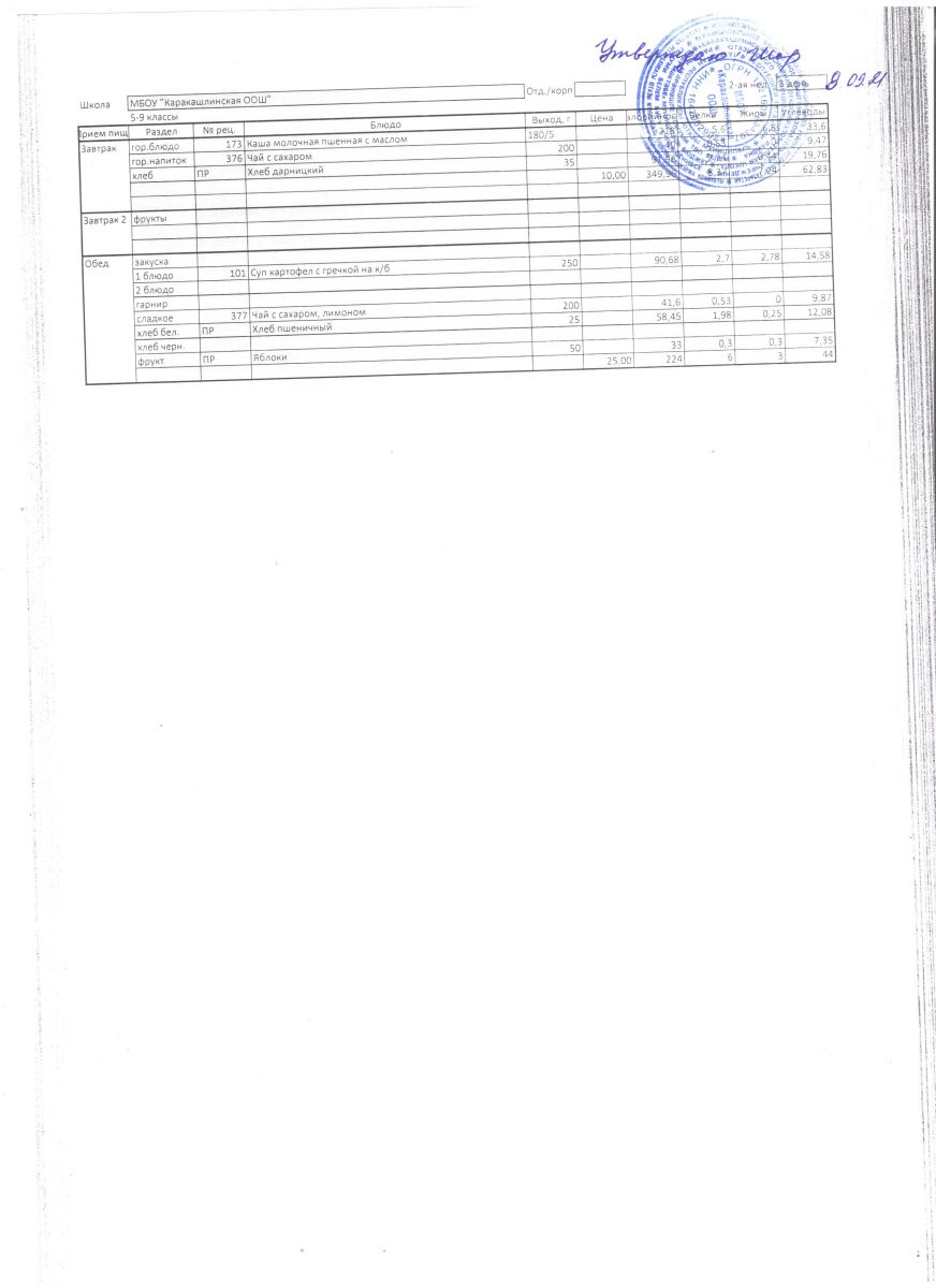 Меню на 09 сентября 5-9 классы