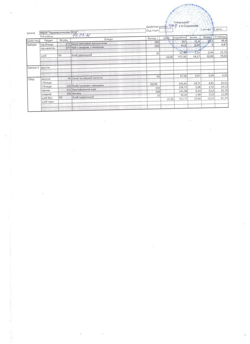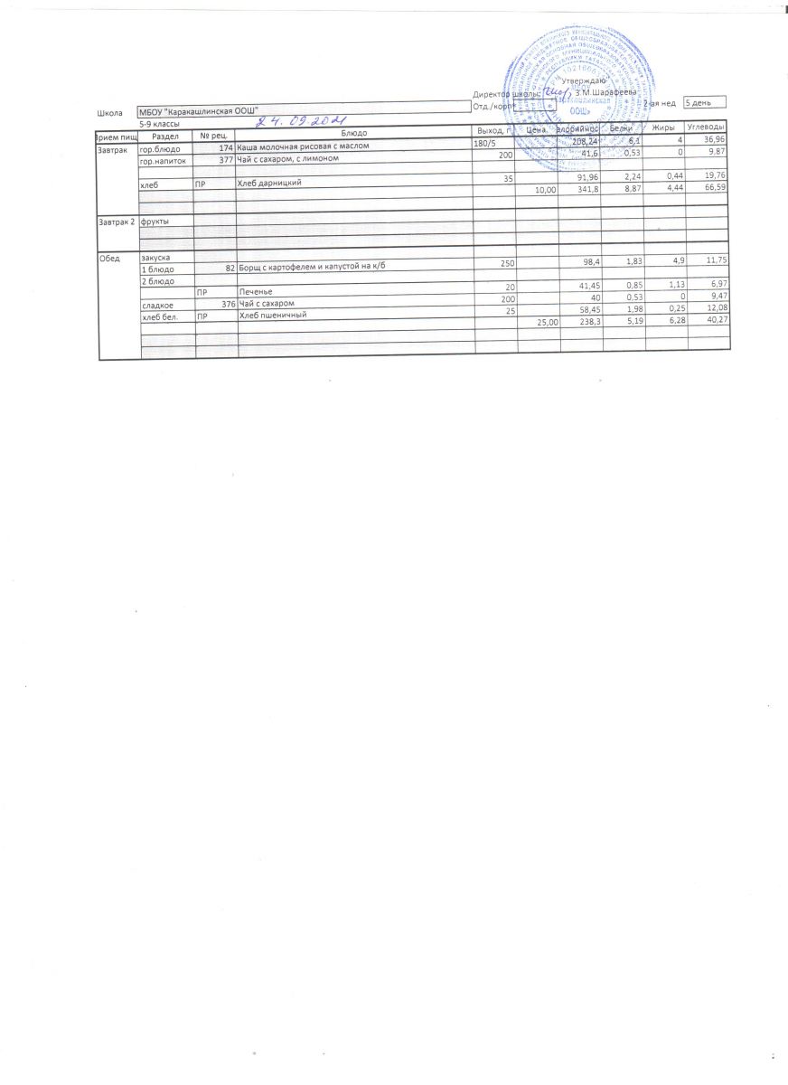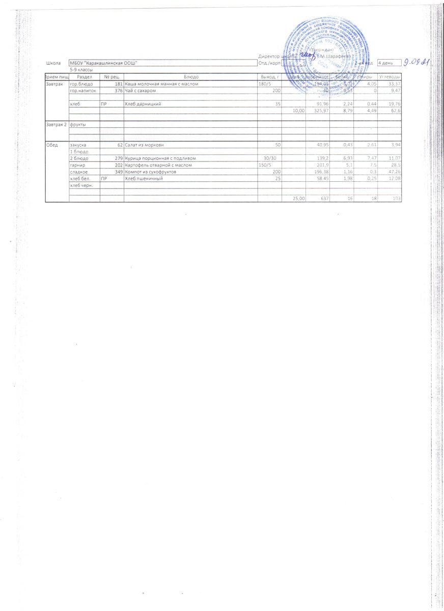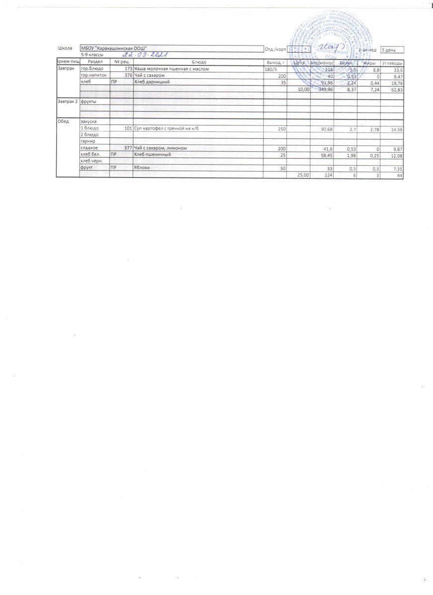 Меню на 21 сентября 5-9 классы