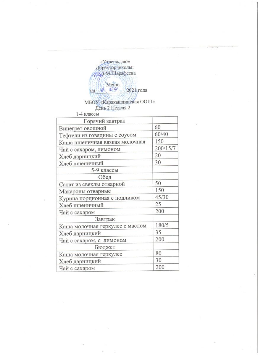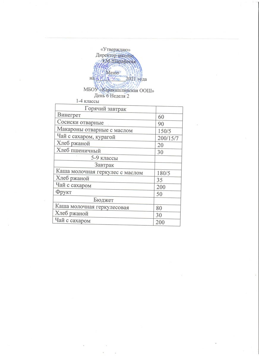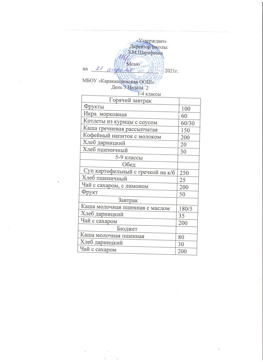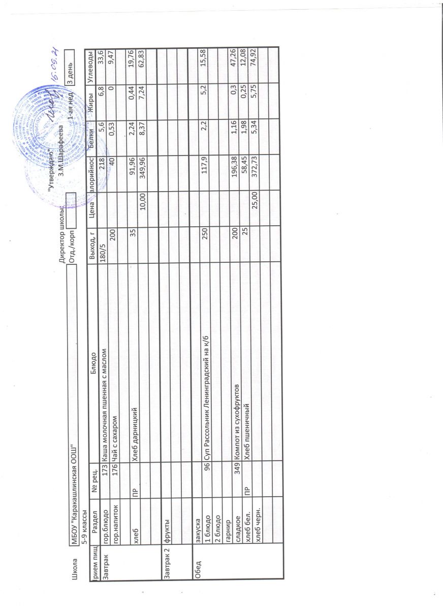 Меню на 21 сентября 5-9 классы