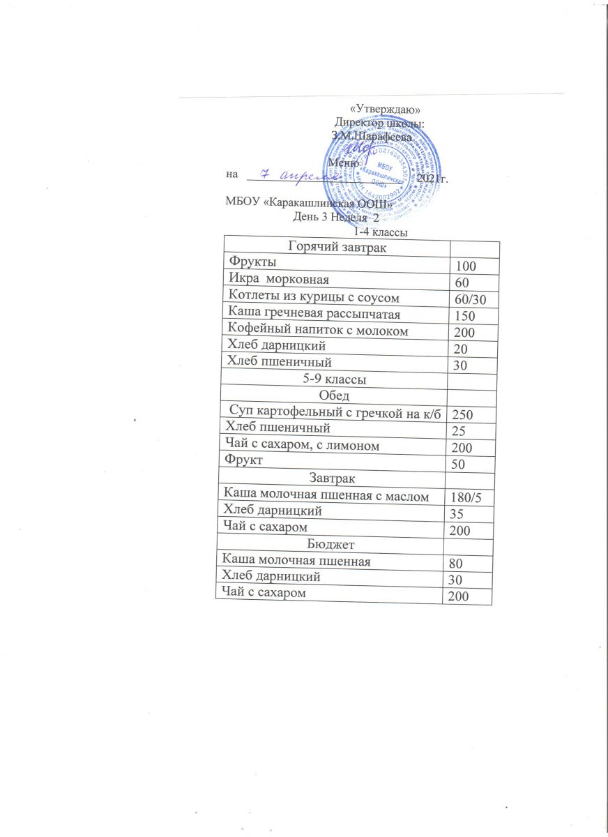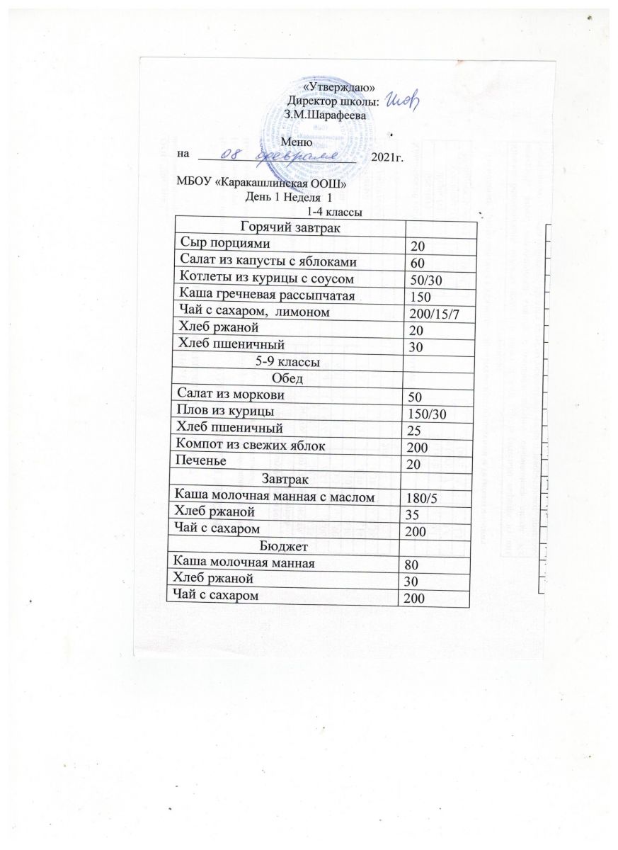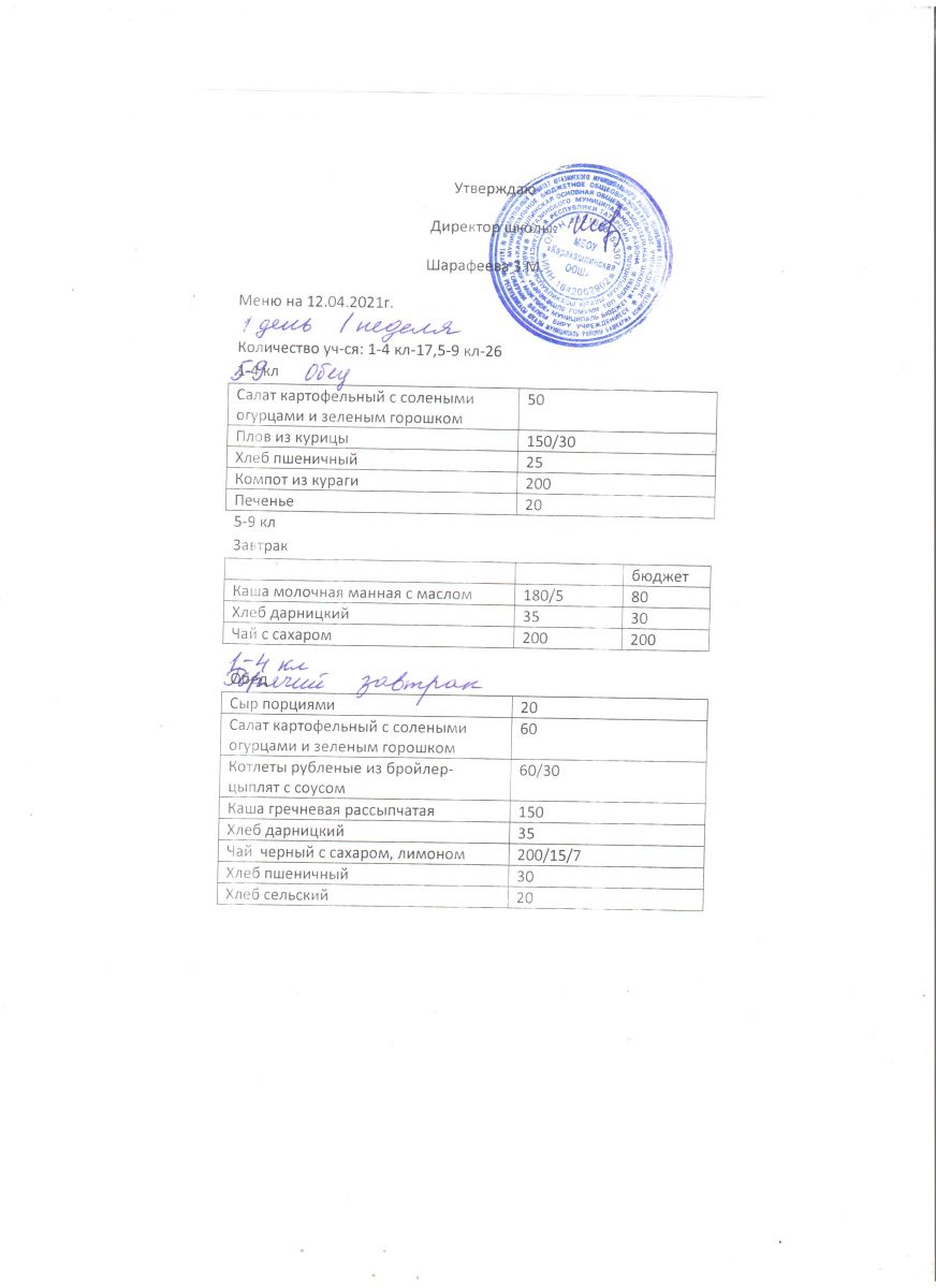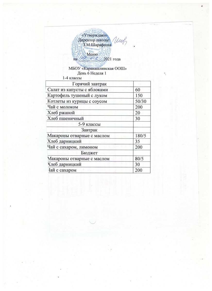 Меню на 21 сентября 5-9 классы