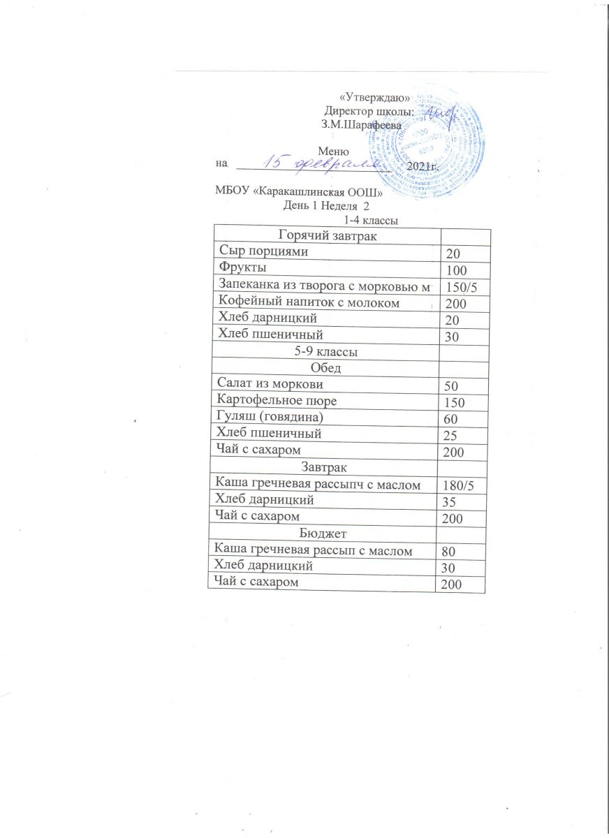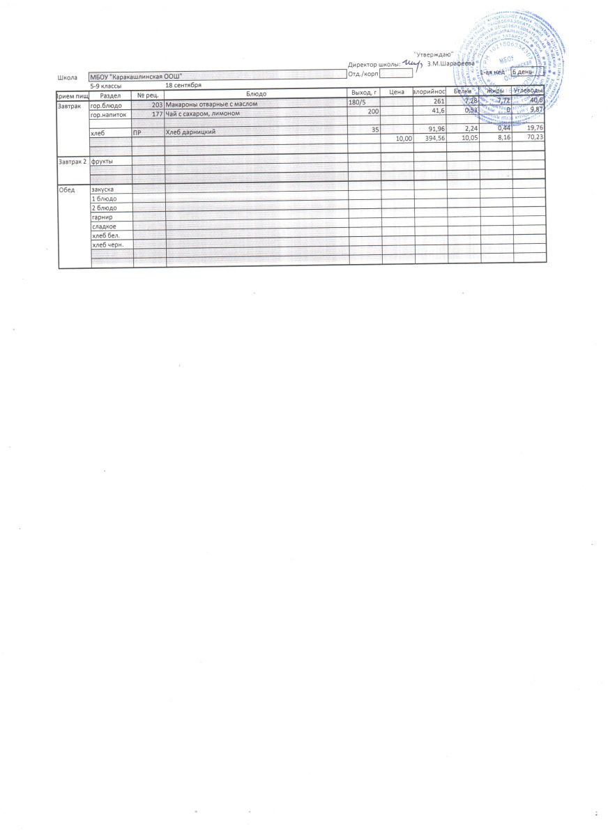 Меню на 15 сентября 5-9 классы