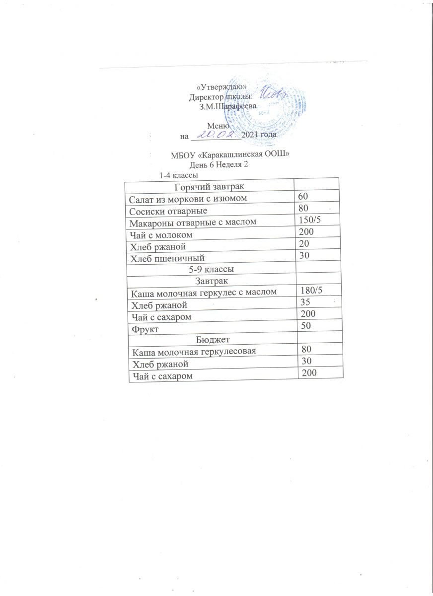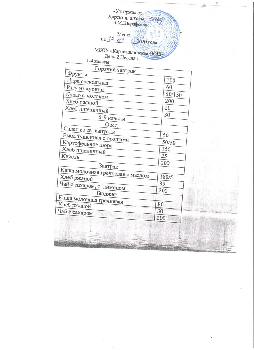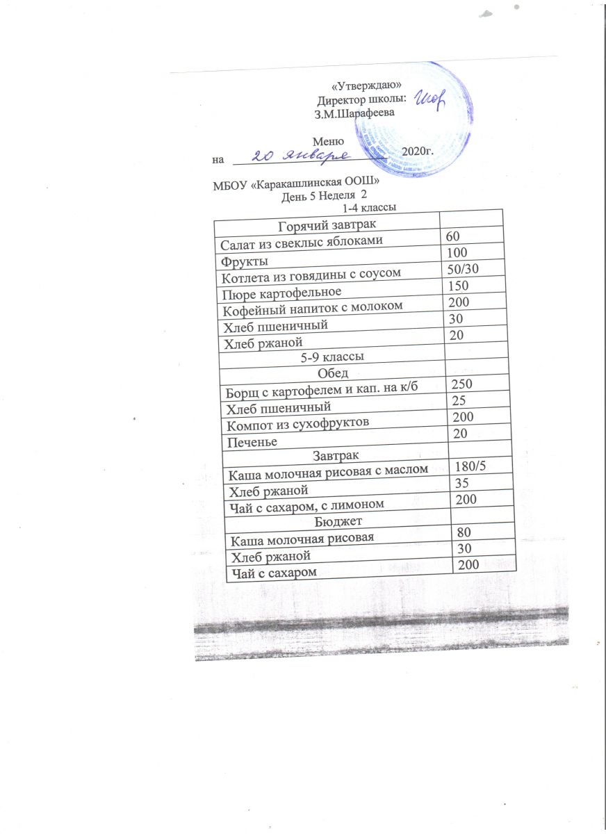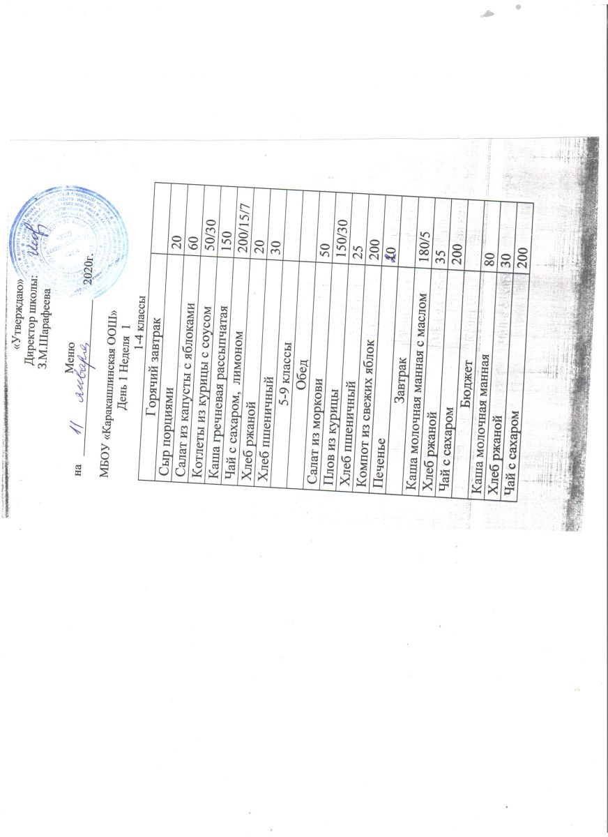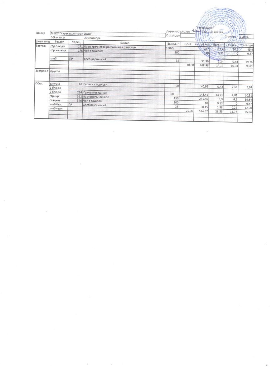 Меню на 20 сентября 5-9 классы