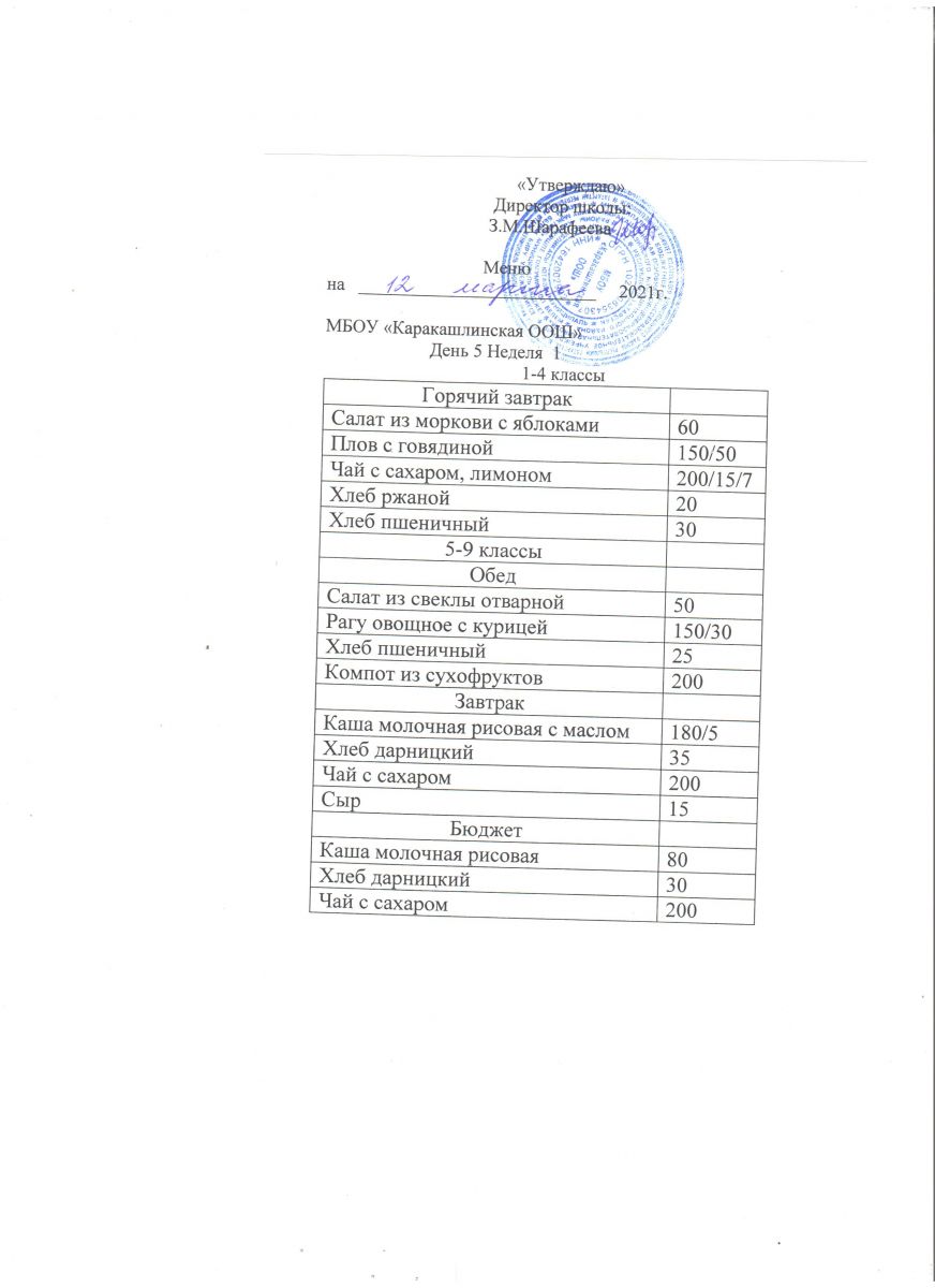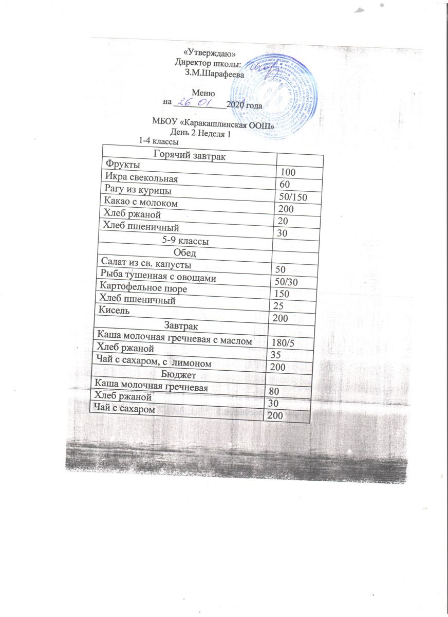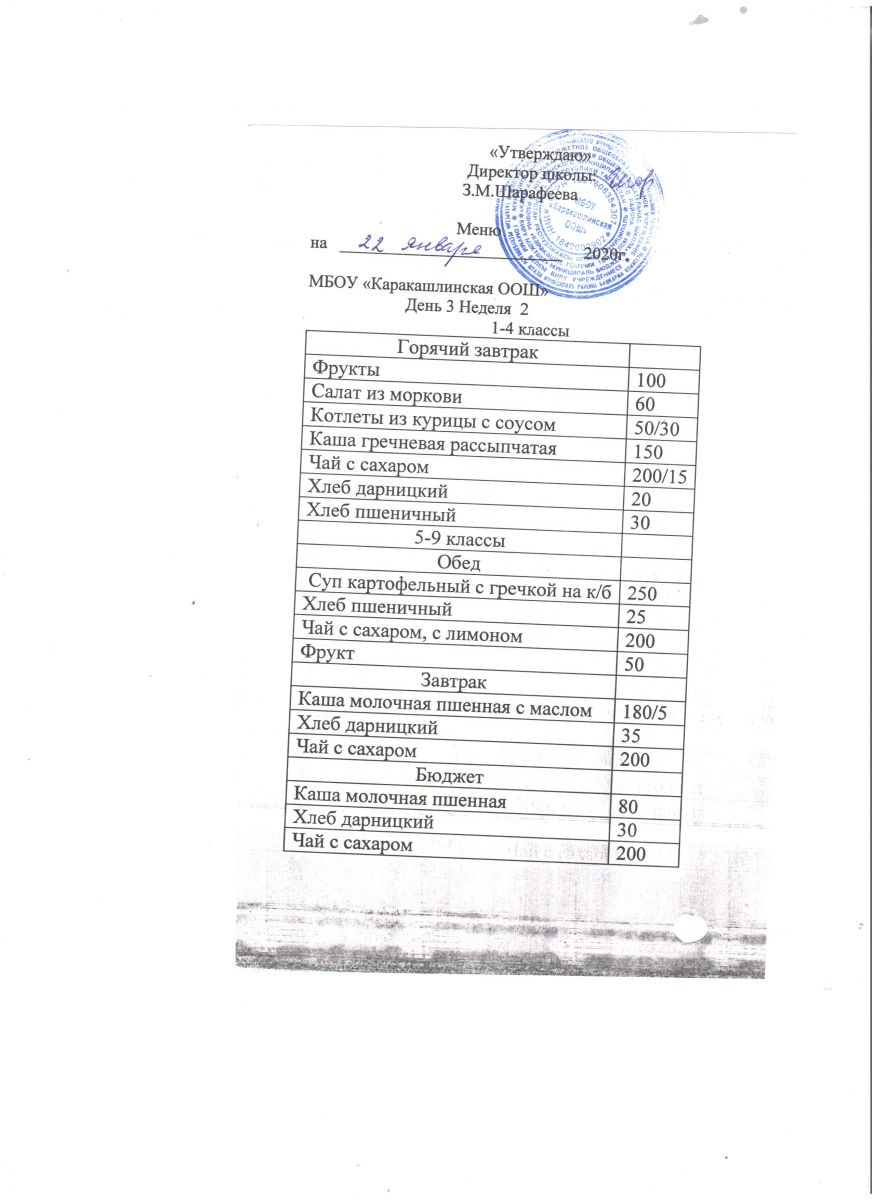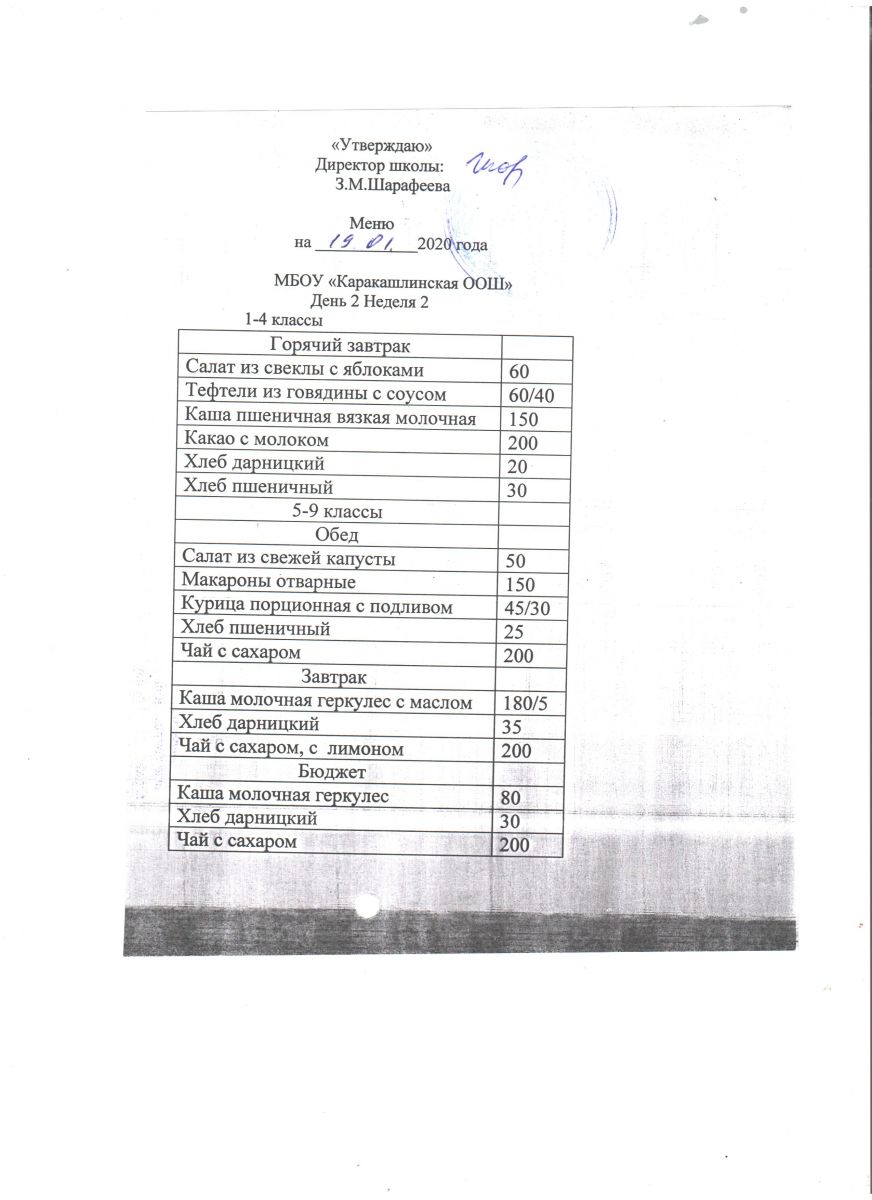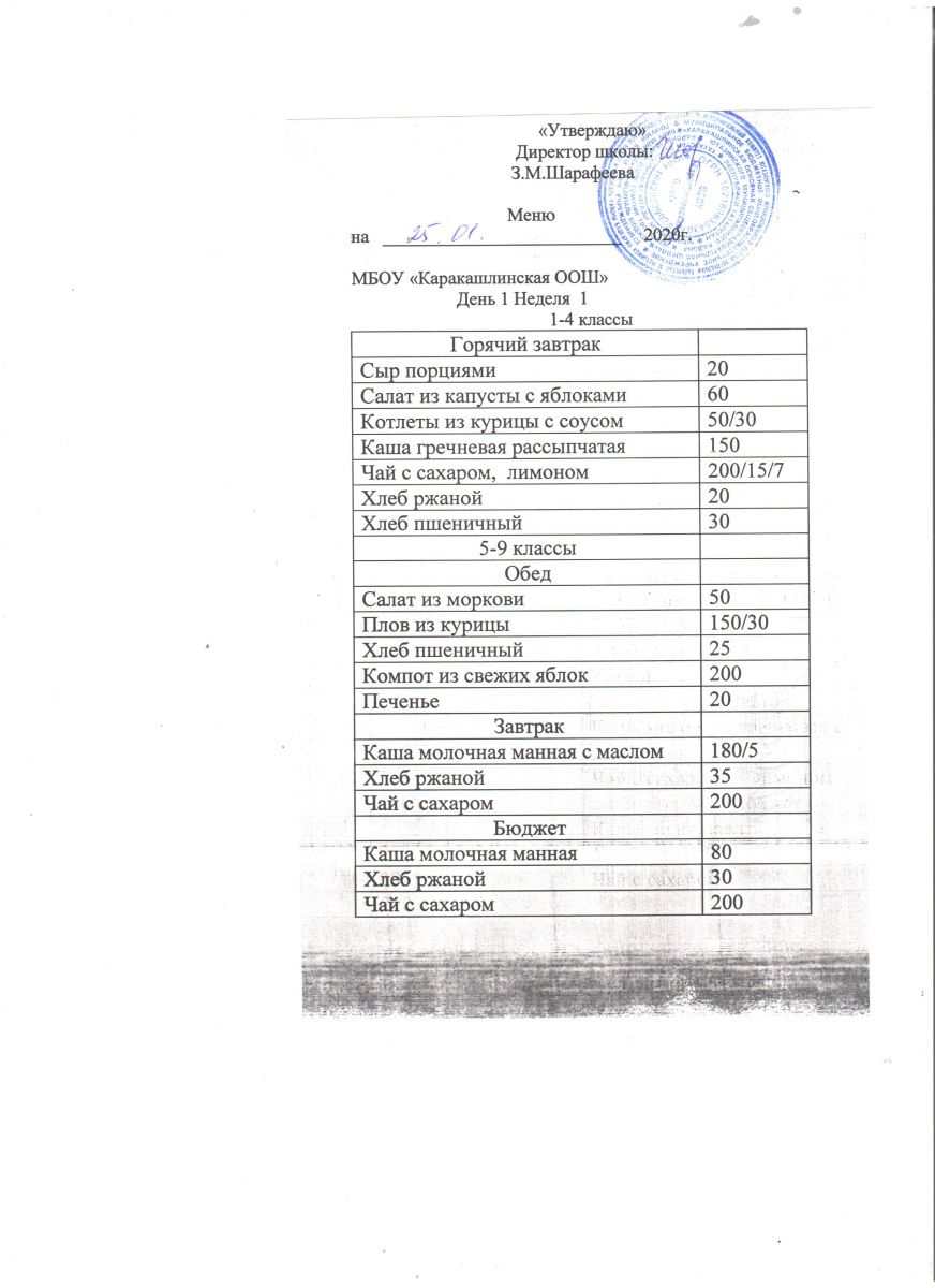 Меню на 20 сентября 5-9 классы