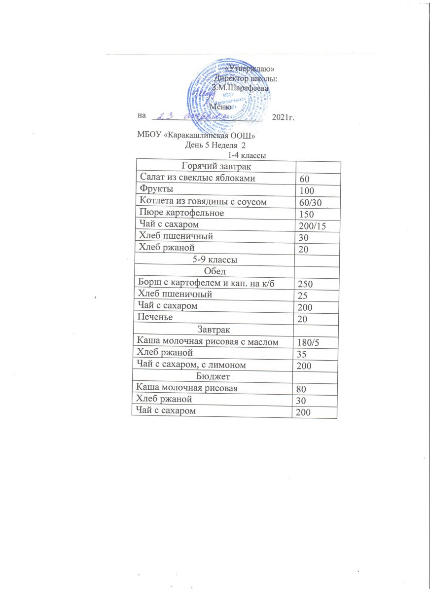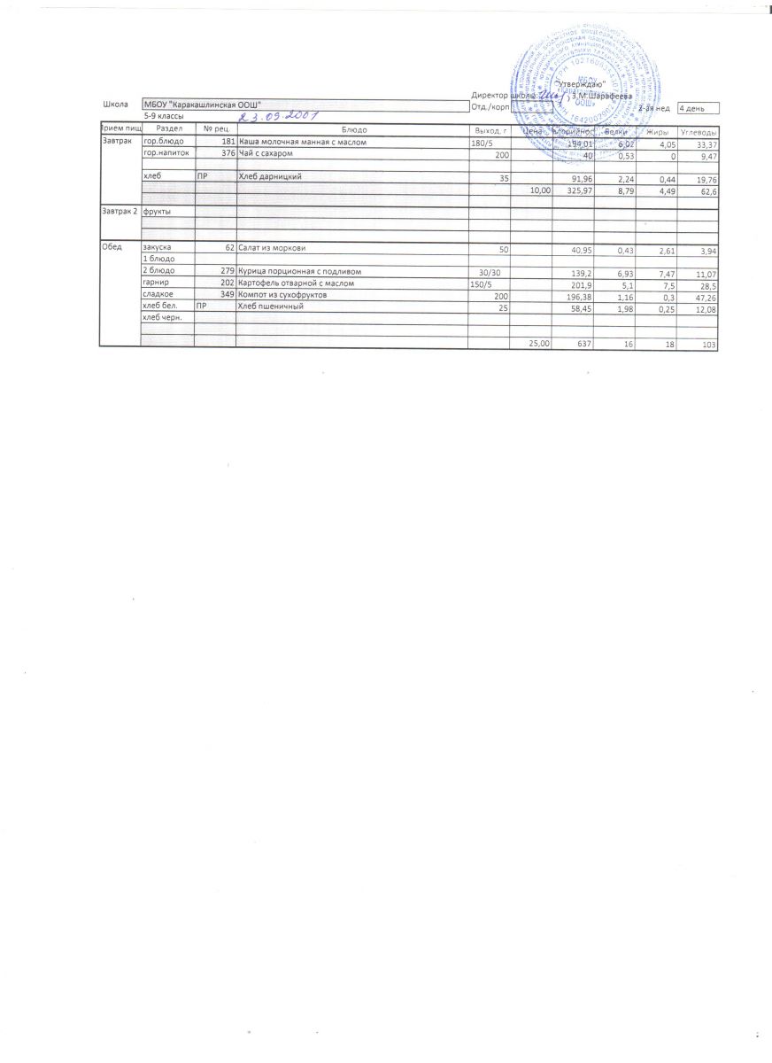 Меню на 23 сентября 5-9 классы