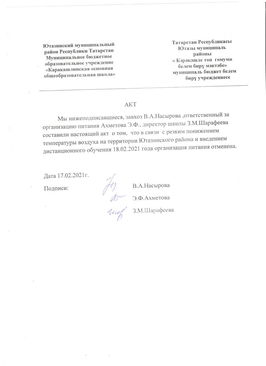 Акт об отмене питания в 1-9 классах на 25.02.2021 год.
