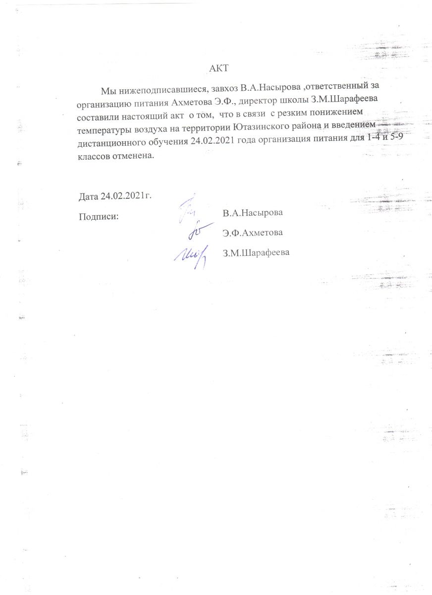Акт об отмене питания в 1-9 классах на 24.02.2021 год.