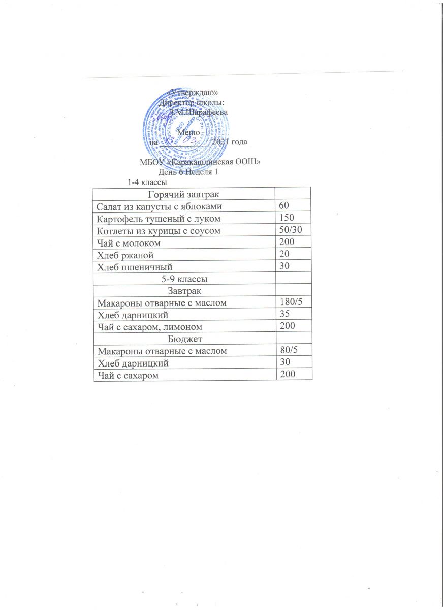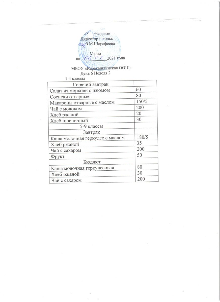 Меню на 06 сентября 5-9 классы