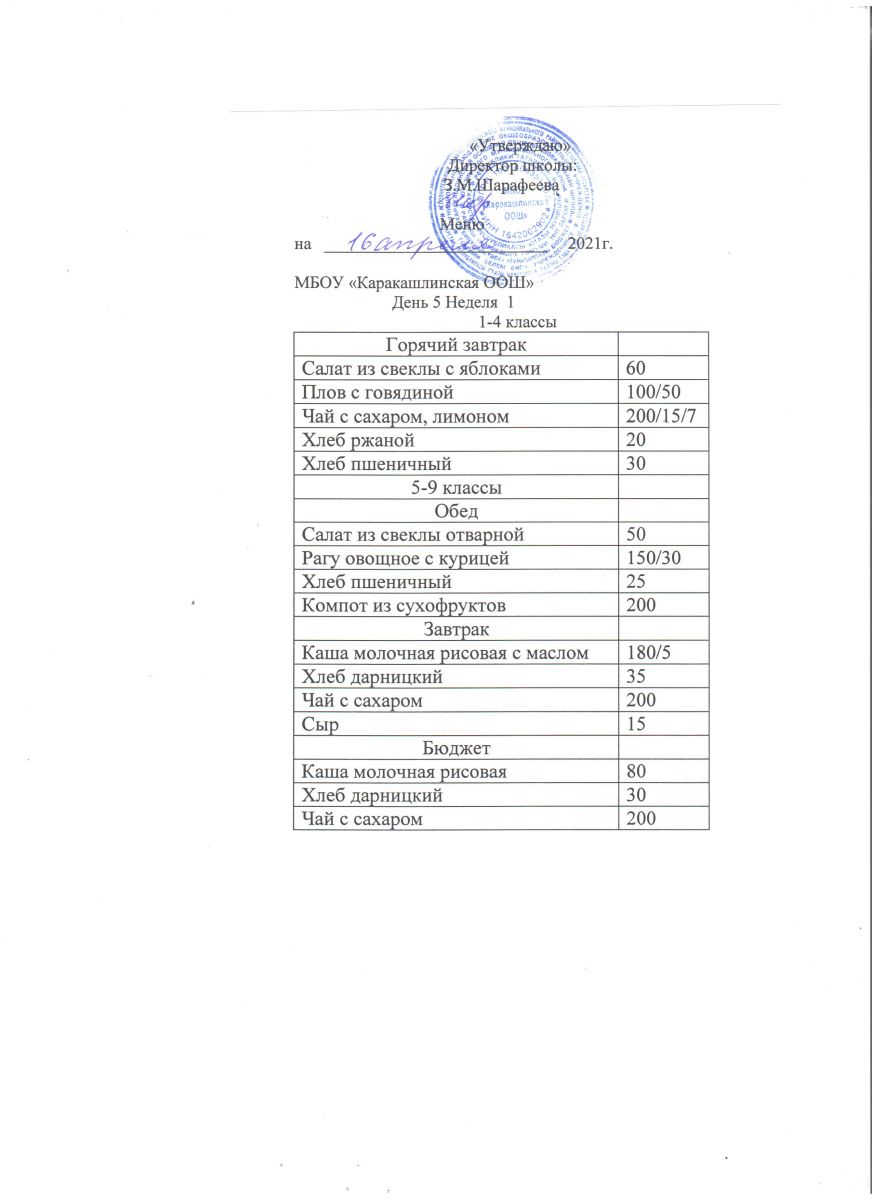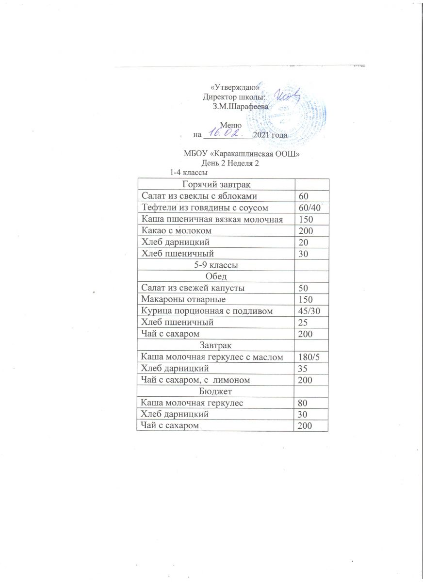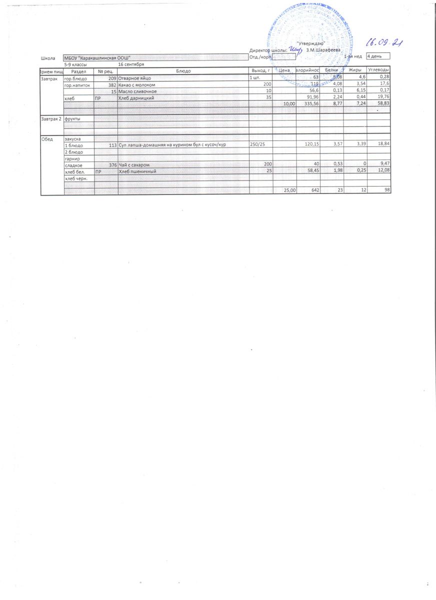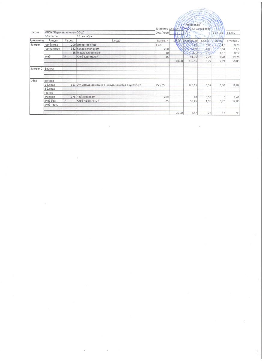 Меню на 16 сентября 5-9 классы