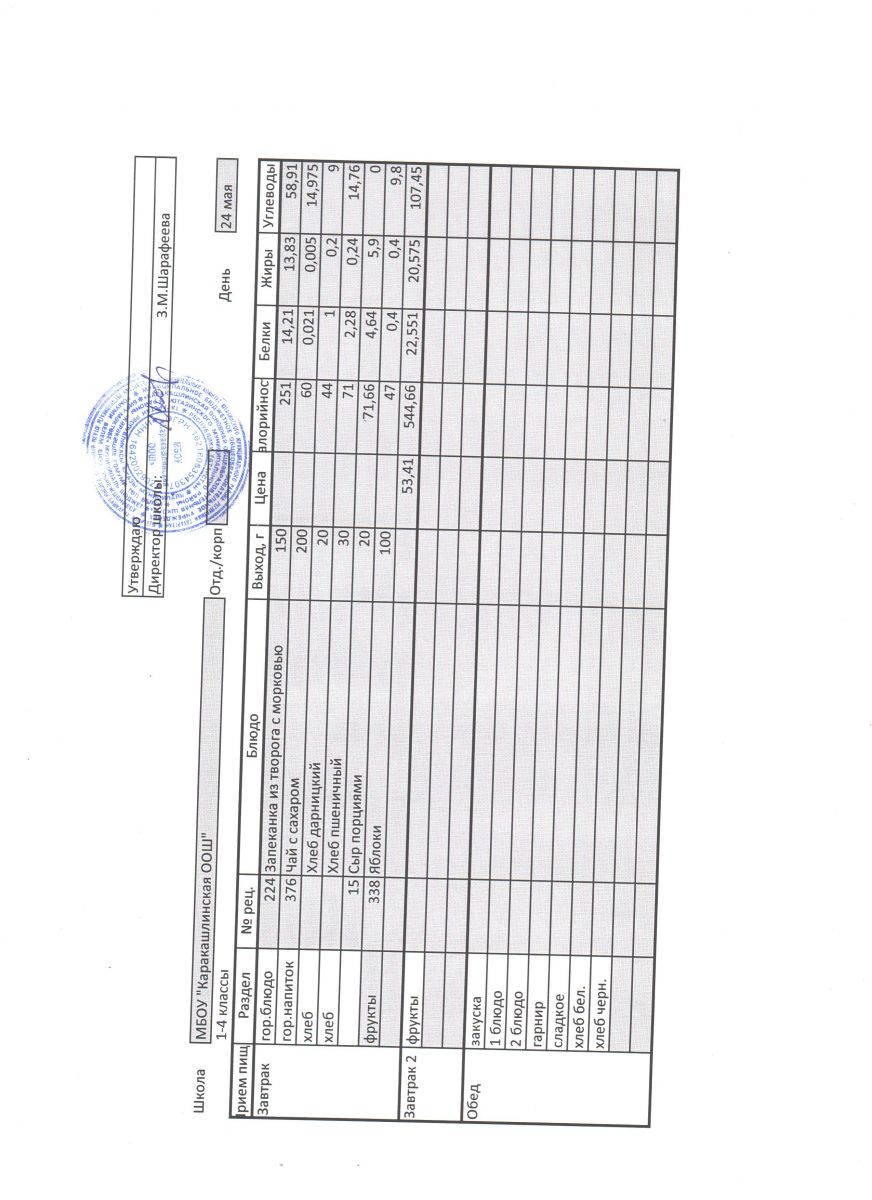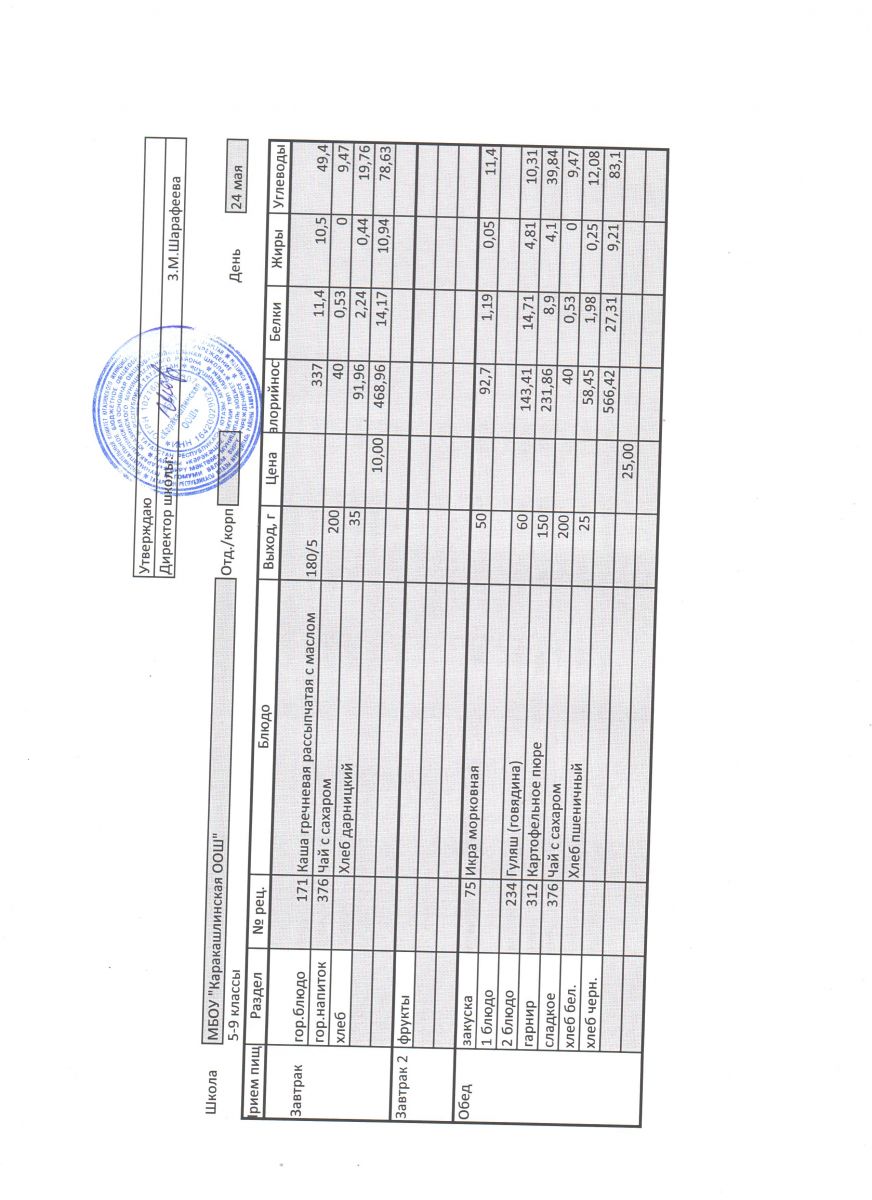 Меню на 24 сентября 5-9 классы