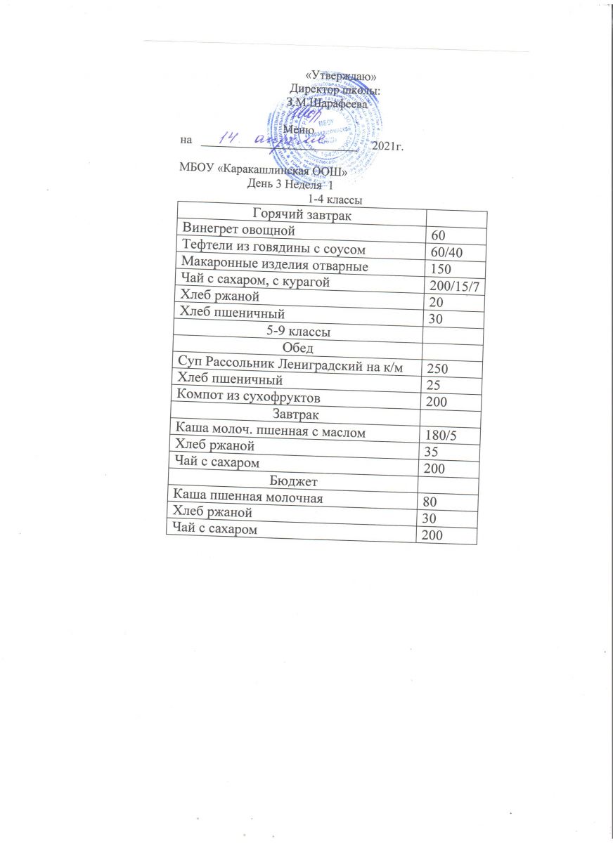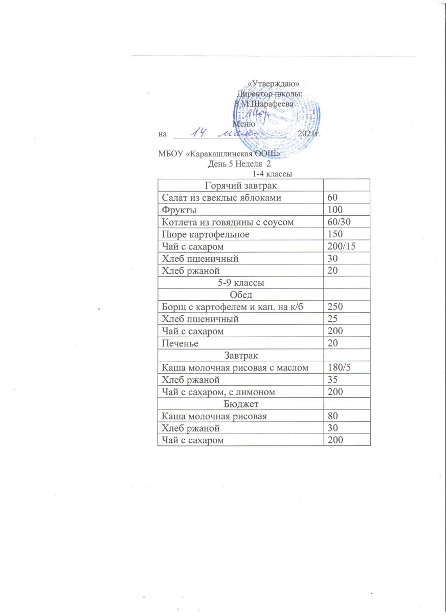 Меню на 14 сентября 5-9 классы