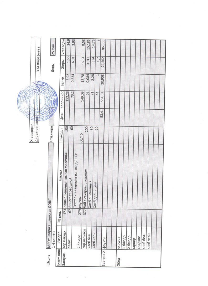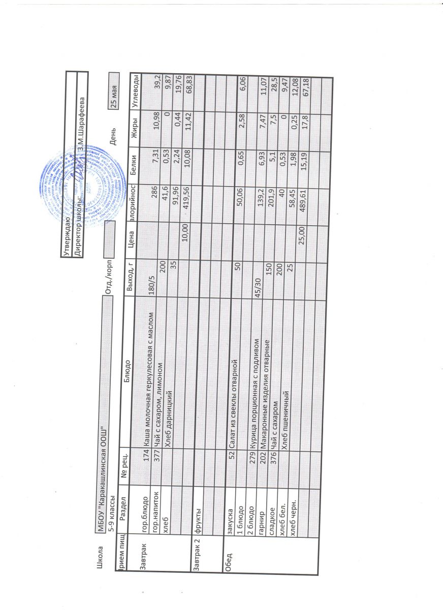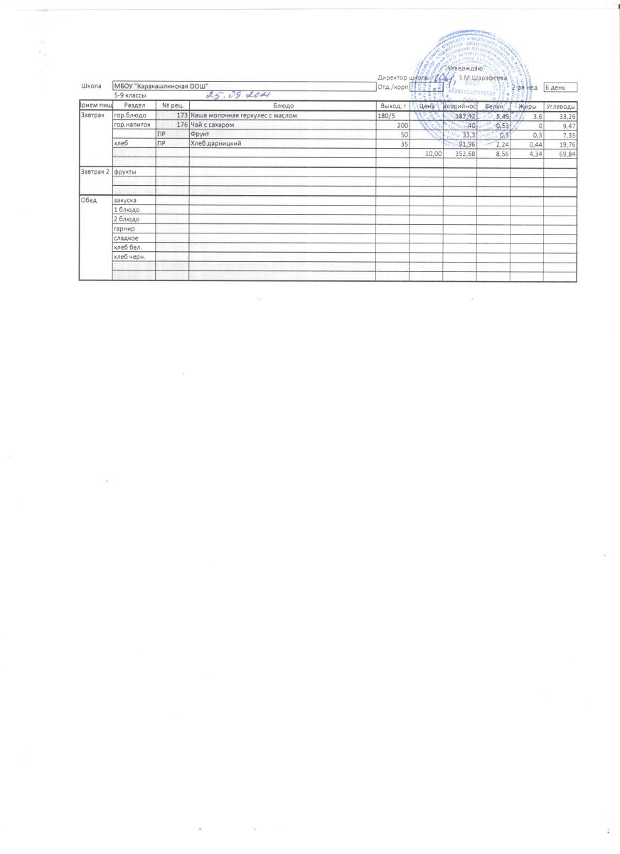 Меню на 25 сентября 5-9 классы