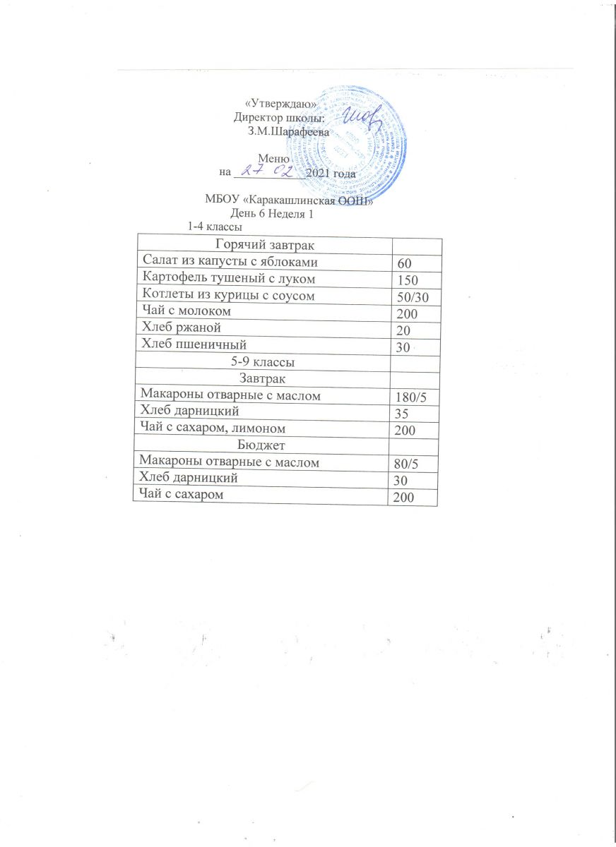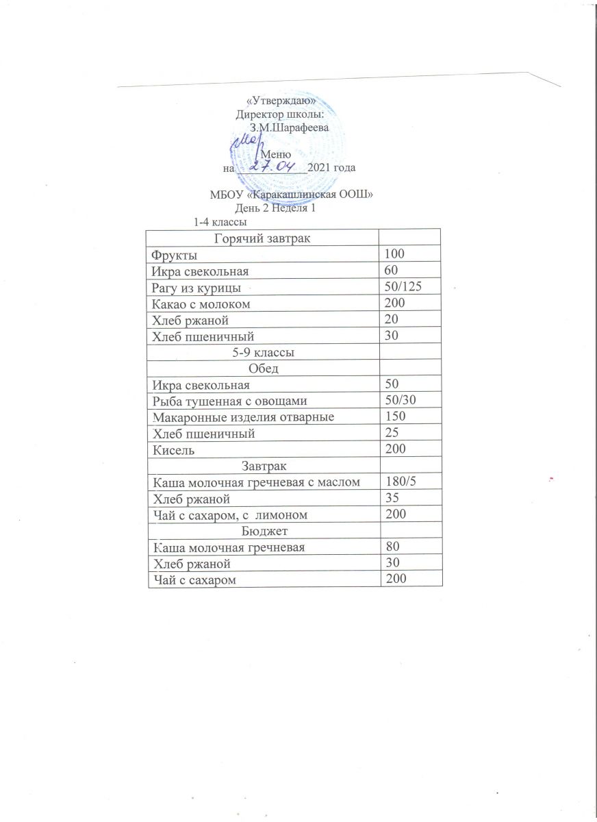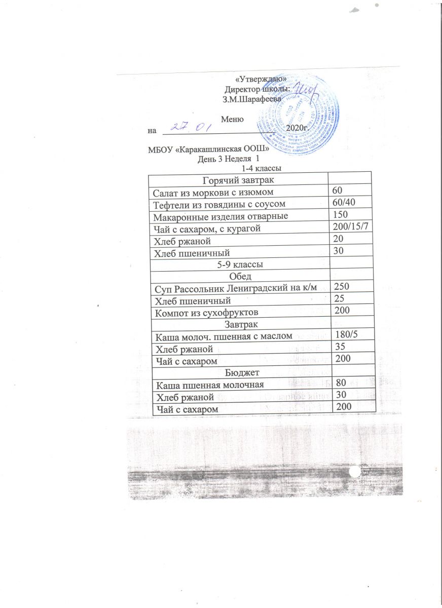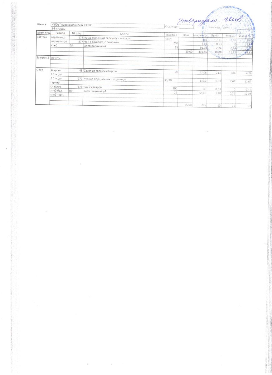 Меню на 27 сентября 5-9 классы