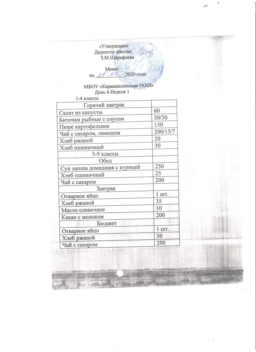 Меню на 28 сентября 5-9 классы