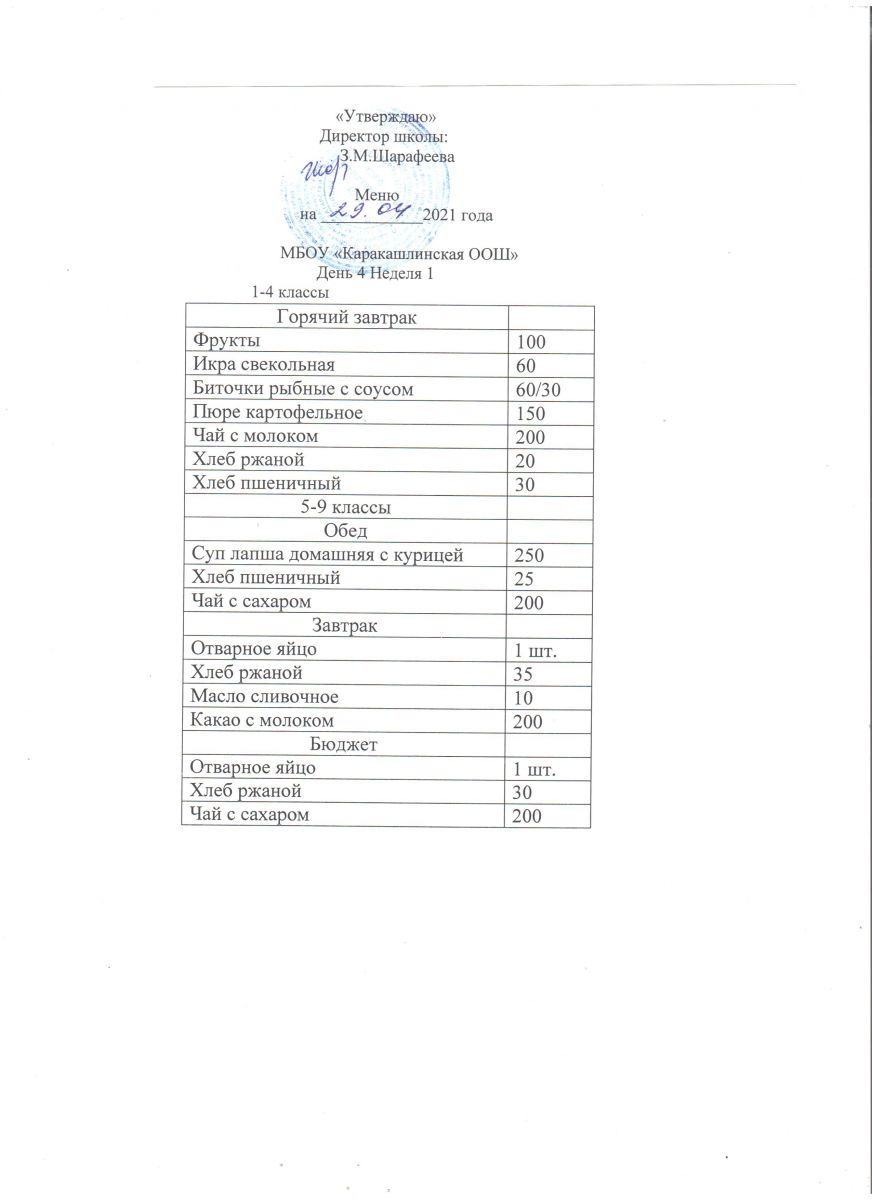 Меню на 29 сентября 5-9 классы