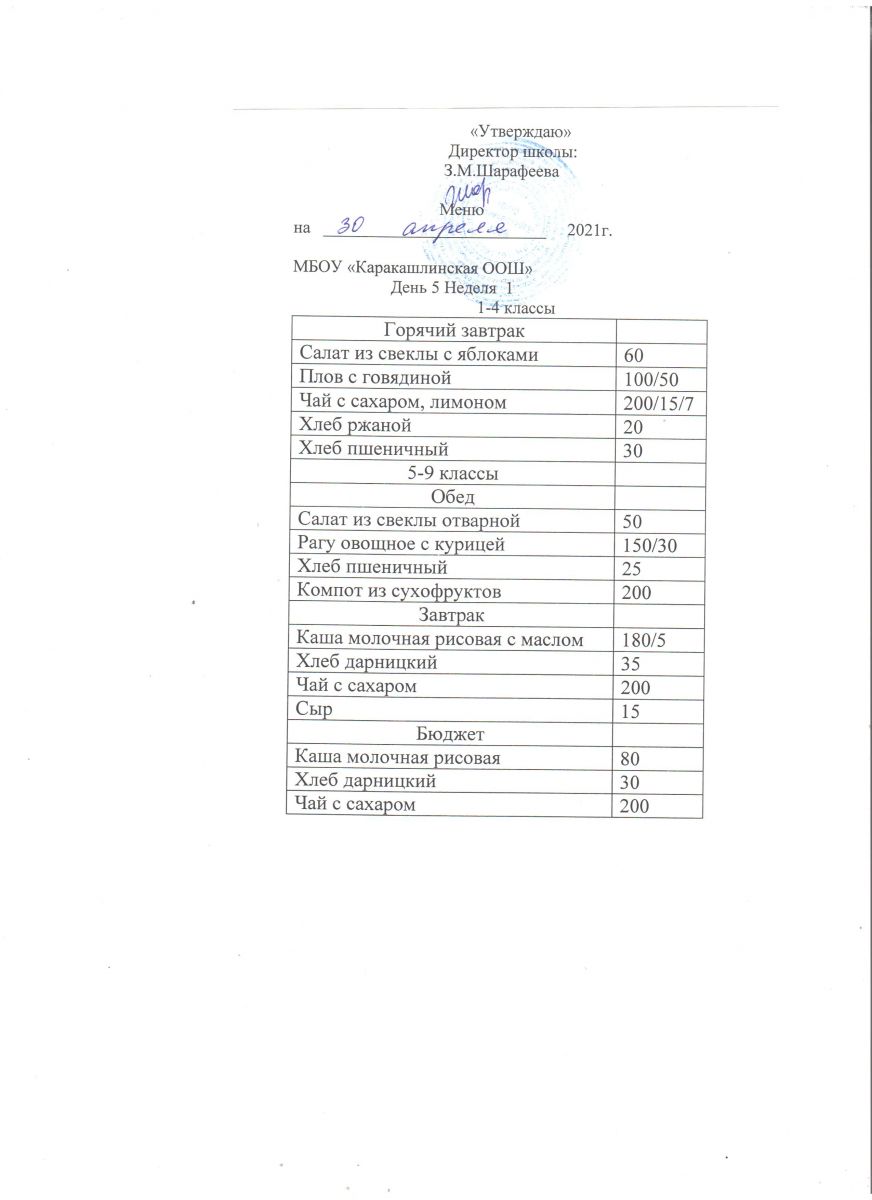 Меню на 30 сентября 5-9 классы