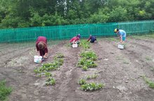 13 июня в летнем лагере труда и отдыха прошёл интересно и полезно. День начался с утренней гимнастики. До обеда воспитанники лагеря трудились на пришкольном участке, занимались рыхлением междурядий картофеля. После обеда играли в спортивные игры. В целях пропаганды здорового образа жизни была организована онлайн- игра" Вращайте барабан"