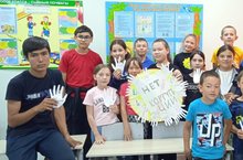 С воспитанниками пришкольного лагеря "Ак каен" , лагеря труда и отдыха прошла акция "Чистые ладоши"