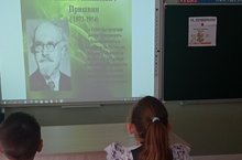 Танылган рус язучысы М. М. Пришвинның тууына 150 ел уңаеннан 2 нче класста язучыга багышланган чара узды. Балалар аның турында белгәннәрен искә төшерделәр, презентация карап тест сорауларына жавап бирделәр. Соңыннан балалар өчен язылган хикәяләрен кызыксынып укыдылар.