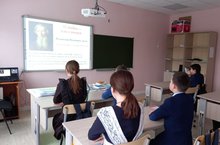 В 7 классе (учитель Хисамутдинова Г.С.) была показана презентация «Наши помощники – словари». Ребята познакомились и повторили виды словарей, их значение, узнали имена известных собирателей русских слов.