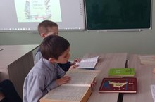 7 нче сыйныфта (укытучы Хисаметдинова Г.с.) «безнең ярдәмчеләр – сүзлекләр»презентациясе күрсәтелде. Балалар сүзлек төрләрен, аларның мәгънәсен кабатладылар, рус сүзләрен җыючыларның исемнәрен белделәр.