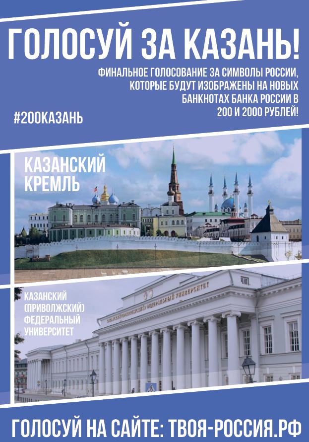 Уважаемые родители и учащиеся! Примите участие в голосовании по выбору символов г.Казань для изображения на новых банкнотах номиналом 200 рублей. Подробнее /upload/storage/org2106/files/Казань Купюра Третий этап(1).pdf, /upload/storage/org2106/files/афиша(1).JPG, /upload/storage/org2106/files/макет банкноты с инструкцией(2).JPG