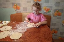 Герасимова Дарина әбисенә пәрәмәч пешерергә булыша.