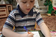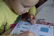 Мәктәпкә әзерлек төркемчеге тәрбияләнүчесе Герасимова Дарина математика китабыннан күнегүләр эшли.