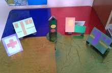 Геометрик фигуралардан машиналар, светофор һәм төрле юл билгеләрен ясадык.