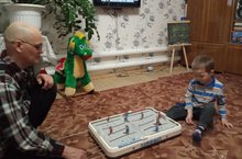 Галимов Искәндәр әтисе белән хоккей уйный.