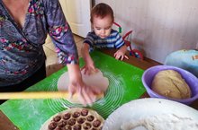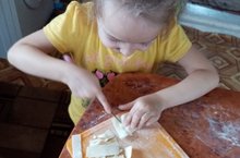Марданова Динә әнисе белән токмач кисәргә өйрәнә.
