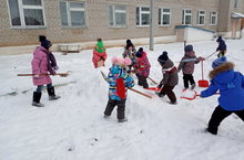 Строим горку из снега.