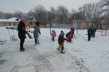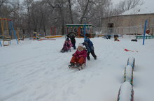 Кышкы табигатькә экскурсия. Хәрәкәтле уен: "Чаналарга утырып, этеп ярышу".