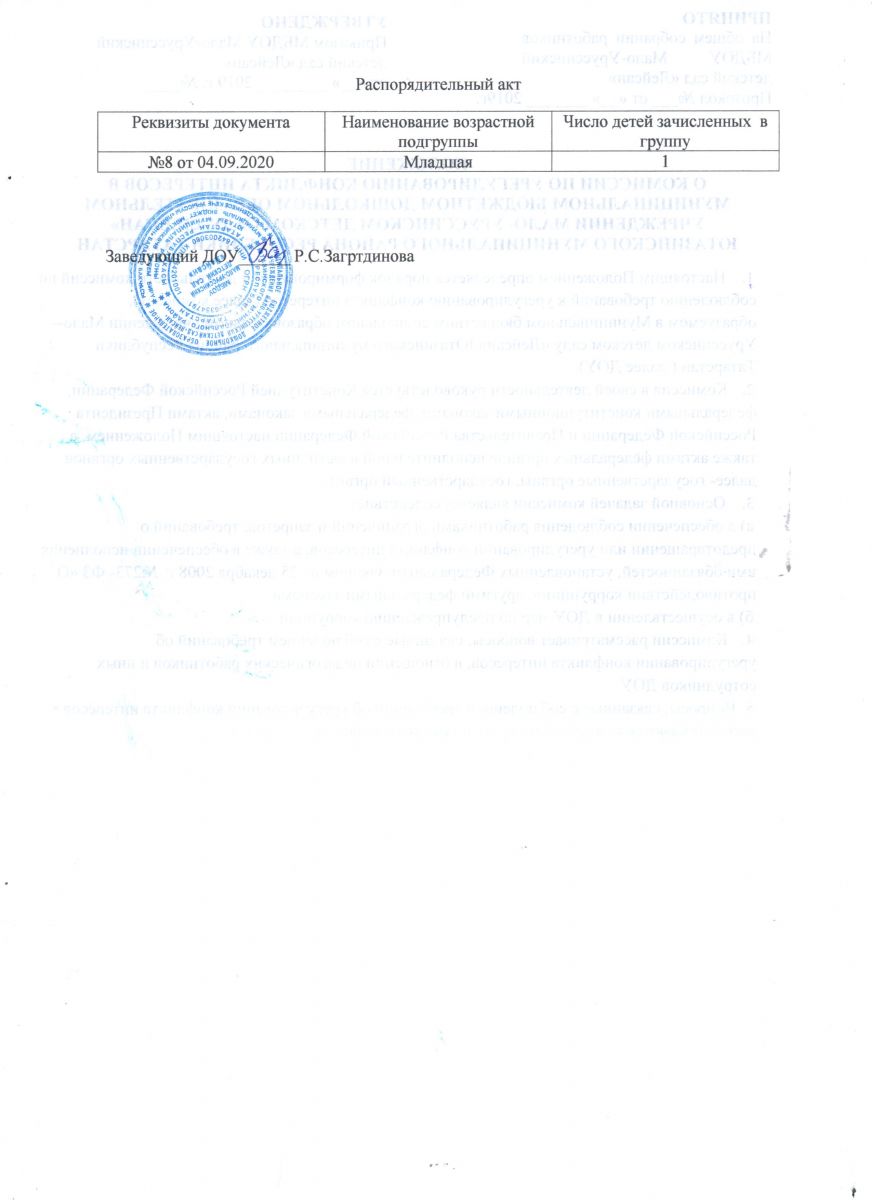 Приказ(образец) о зачислении воспитанника в ДОУ