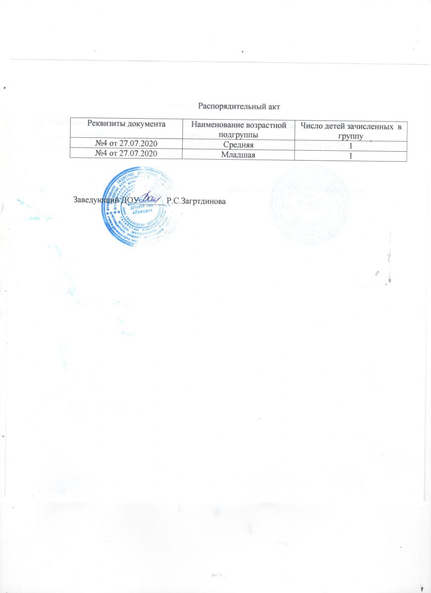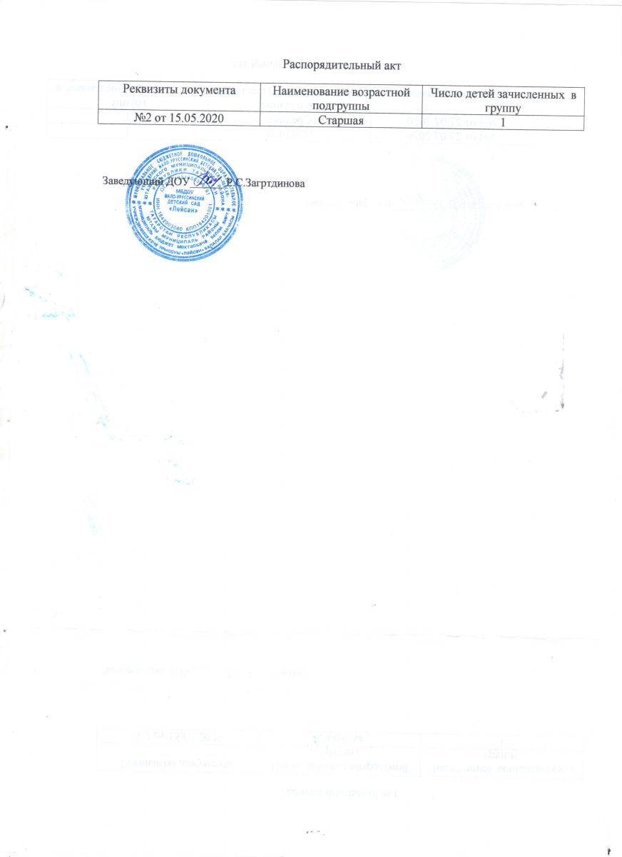 Распорядительные акты о зачислении воспитанников в ДОУ