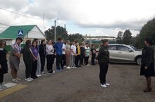 На линейке присутствовали ученики 5-6-7 классов. Одновременно звучал гимн Российской Федерации и Республики Татарстан, учащиеся и педагоги пели гимны.