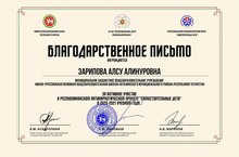 Благодарственным письмом награждена Зарипова Алсу Алинуровна за активное участие в Республиканском антинаркотическом проекте "Самостоятельные дети" в 2020-2021 учебном году